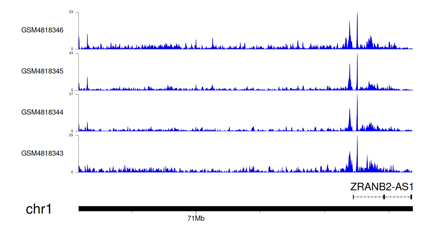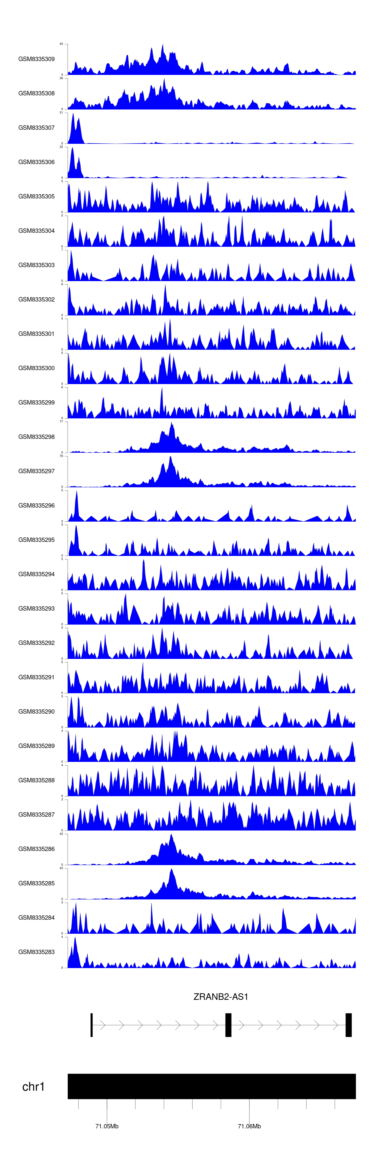 > Dataset: GSE270130 - ZRANB2-AS1 peak across samples