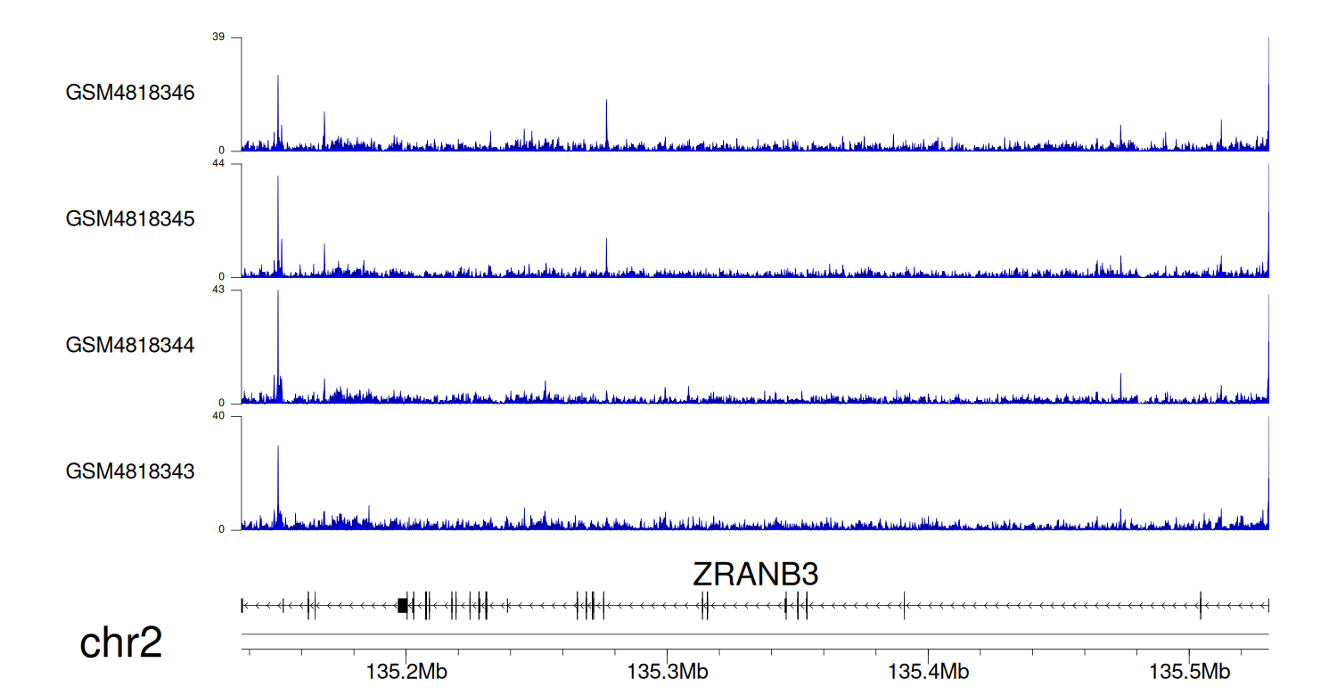 > Dataset: GSE131257 - ZRANB3 peak across samples