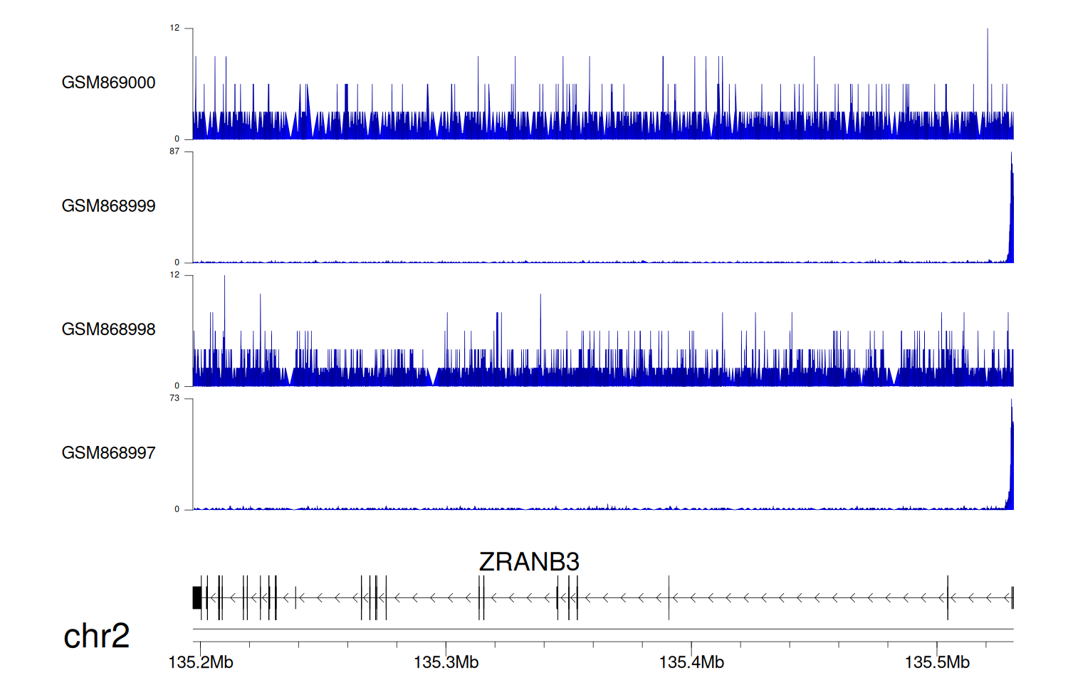 > Dataset: GSE68402 - ZRANB3 peak across samples