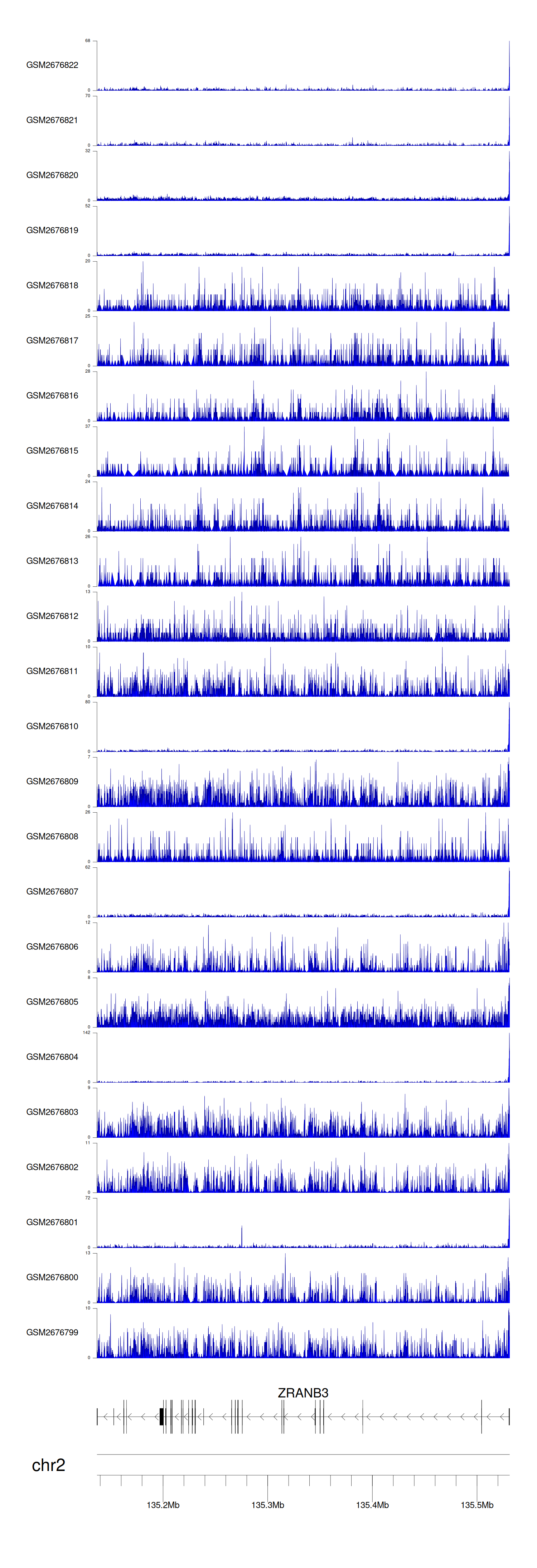> Dataset: GSE100376 - ZRANB3 peak across samples