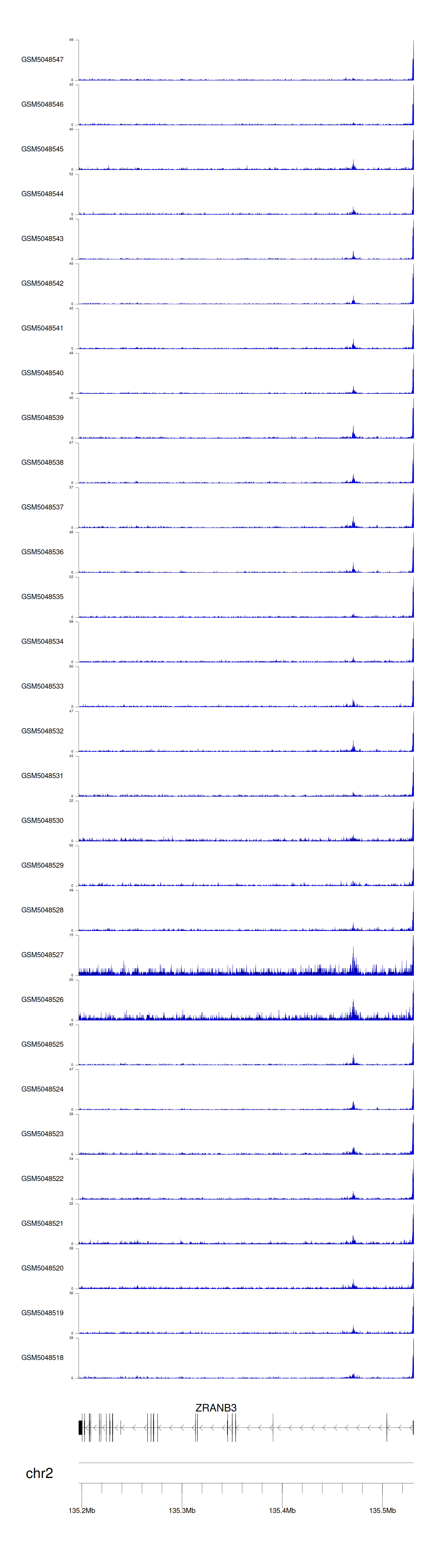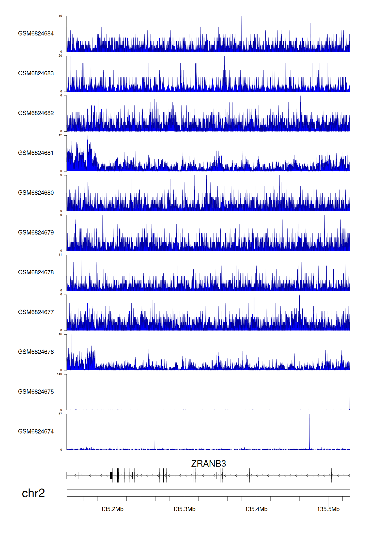 > Dataset: GSE165703 - ZRANB3 peak across samples