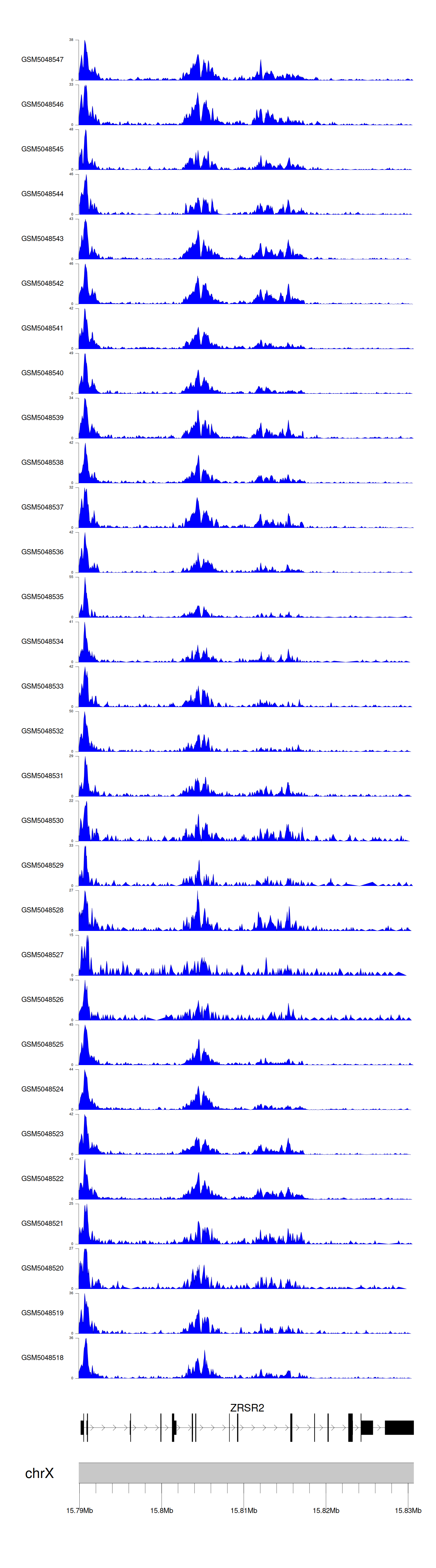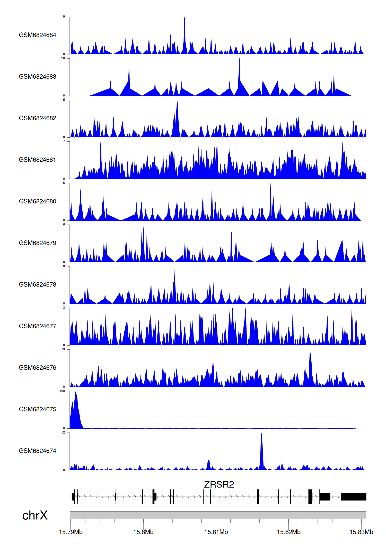 > Dataset: GSE144329 - ZRSR2 peak across samples