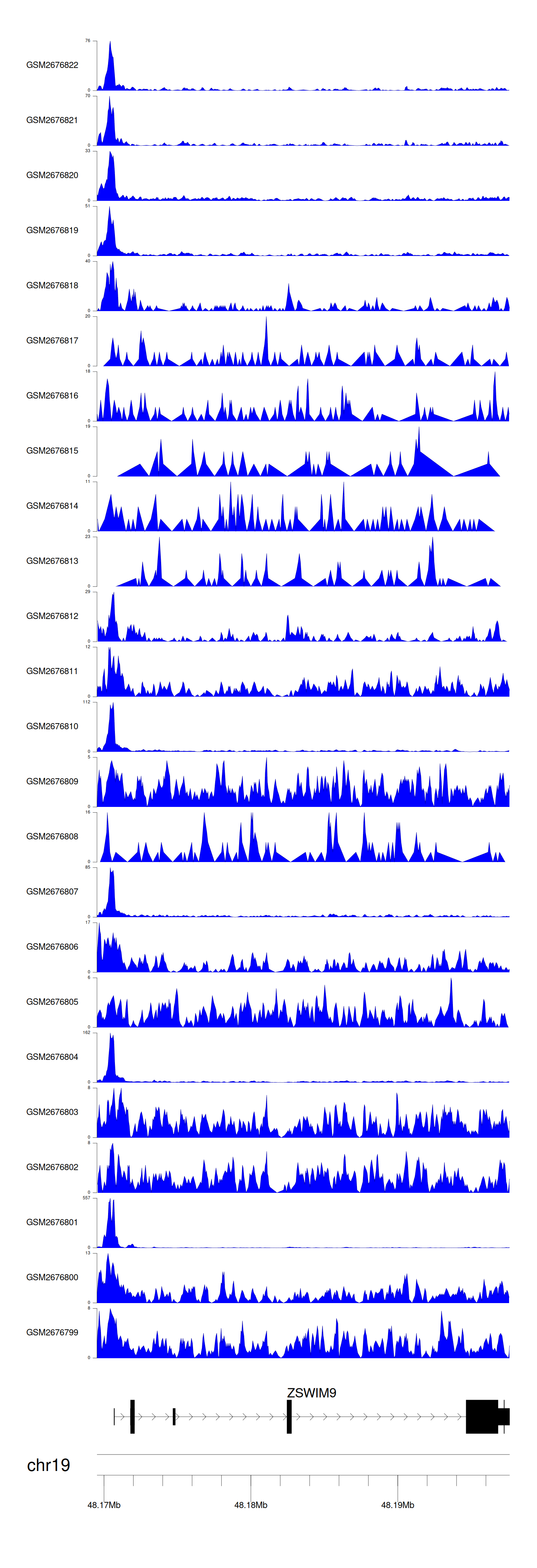 > Dataset: GSE100376 - ZSWIM9 peak across samples