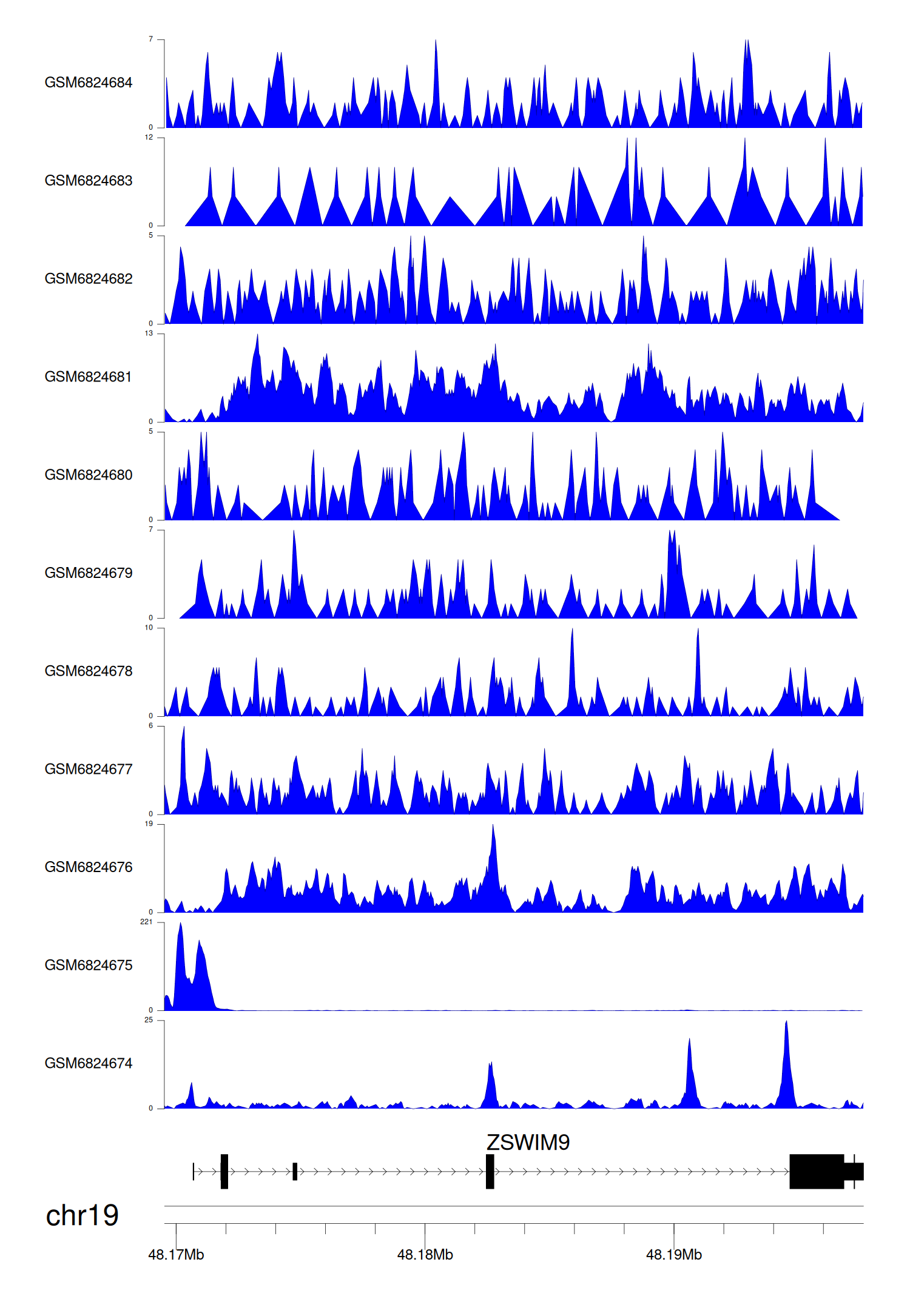 > Dataset: GSE144329 - ZSWIM9 peak across samples